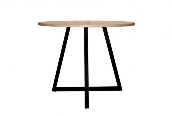 Birch Ply dining table with welded steel frame for indoor use.